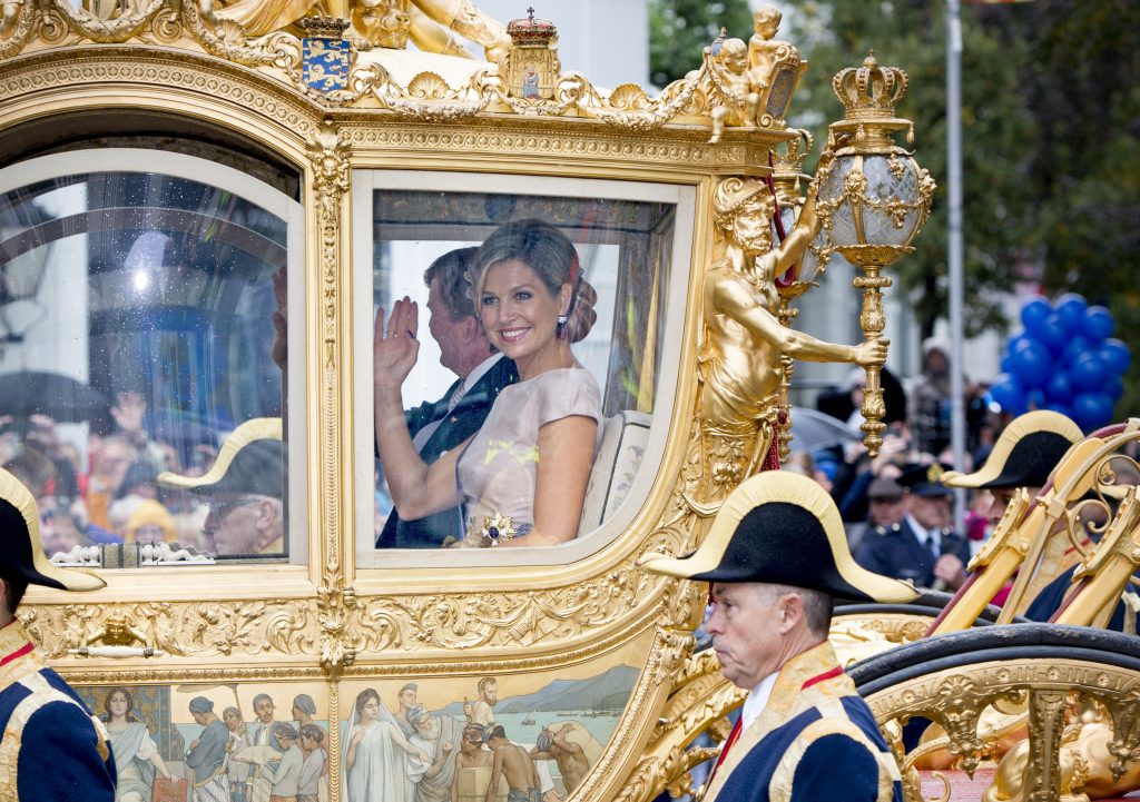 Geschonken door het volk voor Wilhelmina’s achttiende verjaardag en jarenlang een begrip op Prinsjesdag. In 2015 reed de Gouden Koets voor het laatst door Den Haag, om daarna jarenlang gerenoveerd te worden. Zijpanelen met koloniale afbeeldingen waren voor koning Willem-Alexander onder meer de reden om de koets na de renovatie niet meer te gebruiken. De koets staat nu in de koninklijke stallen bij Paleis Noordeinde.