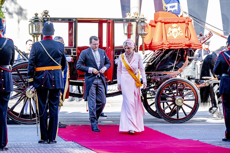 Máxima combineert de grijze jurk van Benchellal, een Nederlandse ontwerper met Marokkaanse roots met een bijpassende hoed. De stof is gemaakt van gerecycled materiaal. De koningin draagt op haar jurk het Ordelint en de Ster van het Grootkruis der Orde van de Nederlandse Leeuw. Koning Willem-Alexander draagt het draaginsigne Ridder Militaire Willems-Orde op een jacquet met grijs vest. Prinses Amalia zorgt met haar donkergroene japon voor kleur. De Prinses van Oranje draagt het Ordelint en de ster van het Grootkruis der Orde van de Nederlandse Leeuw.