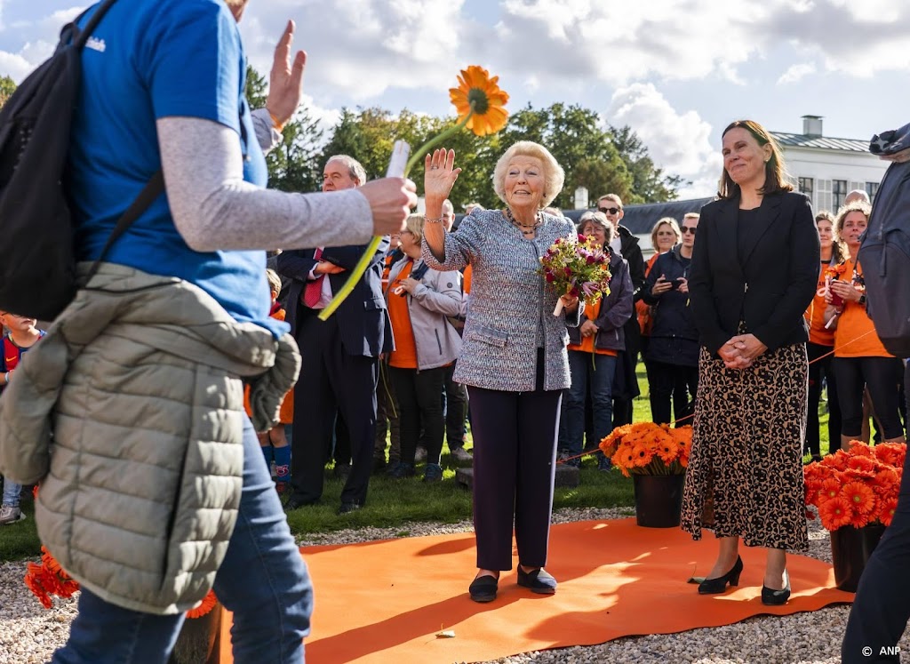 Prinses Beatrix heeft zaterdagmiddag deelnemers van de wandeling het Oranjepad bij de finish ontmoet. De prinses trof ze bij Paleis Soestdijk in Baarn, het eindpunt van de route om aandacht te vragen voor de strijd tegen spierziekten.