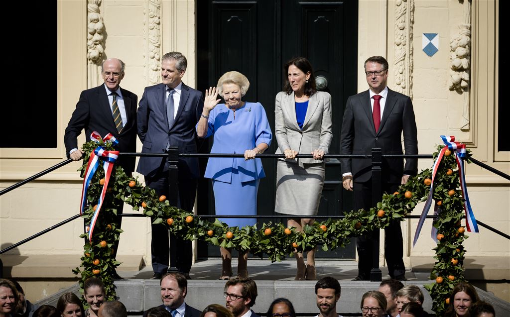 Prinses Beatrix heeft dinsdag net als vorig jaar vanaf het bordes van het Mauritshuis in Den Haag staan kijken naar koning Willem-Alexander en koningin Máxima die voorbijkwamen.