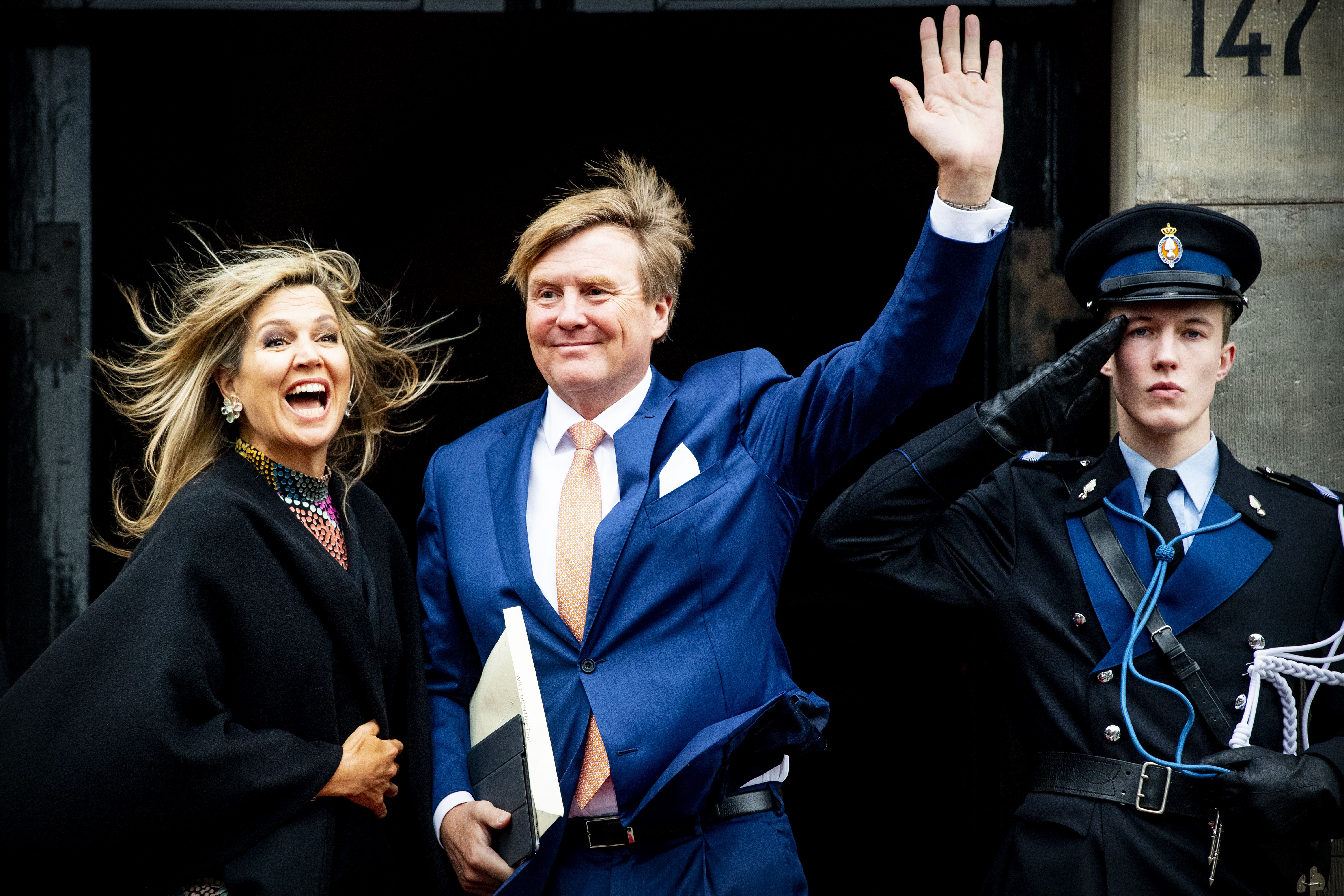 Koning Willem-Alexander en koningin Máxima komen aan bij het Koninklijk Paleis in Amsterdam voor hun traditionele nieuwjaarsontvangsten. Prinses Beatrix is ook aanwezig, evenals prinses Margriet en Pieter van Vollenhoven.