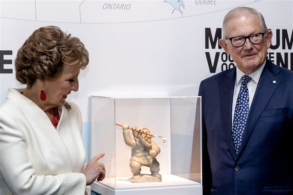 Prinses Margriet en Pieter van Vollenhoven waren zelf ook in Leiden, waar ze de expositie met kunst van de Inuit openden. In de tentoonstelling zijn ook objecten uit hun eigen collectie te zien.