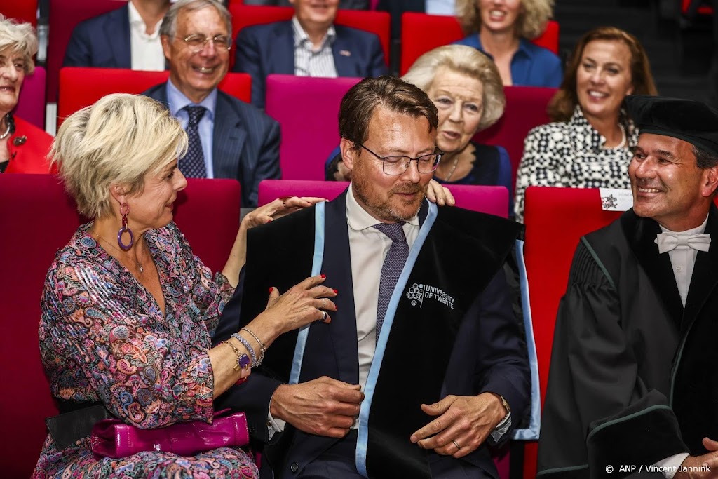 Prins Constantijn heeft vrijdag een eredoctoraat ontvangen van de Universiteit Twente bij de viering van het 60-jarig bestaan van de universiteit. Ook Constantijns moeder, prinses Beatrix, en zijn vrouw, prinses Laurentien, waren aanwezig.
