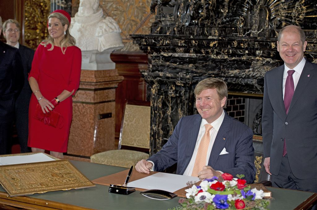 De koning was met Máxima vrijdagmorgen in Hamburg al vroeg uit de veren om in de oude Vismarkt aan de Elbe te leren over de mogelijkheden van vloeibaar natuurlijk gas (LNG) als brandstof in de scheepvaart. Daarna was het tijd voor een bezoek aan de Joop van den Ende Academy, en naast ontwikkelingen op het gebied van podiumkunsten ook een kort bezoek aan een bijeenkomst in de Academy over schoon openbaar vervoer in de toekomst.