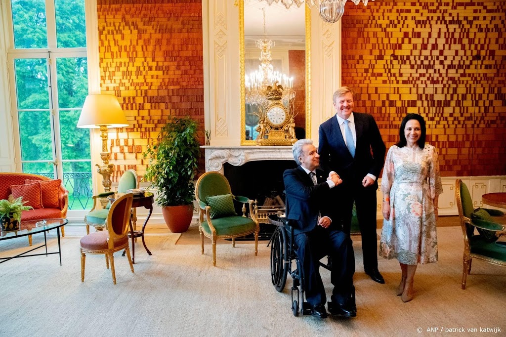 Eind vorige maand kregen Willem-Alexander en Máxima staatssecretaris Raymond Knops van Koninkrijksrelaties op bezoek. Daarmee werd Huis ten Bosch officieel in gebruik genomen. De Ecuadoraanse president ging vrijdagochtend langs in het kader van zijn werkbezoek aan Nederland. Vrijdagmiddag spreekt hij met minister van Volksgezondheid en vicepremier Hugo de Jonge.