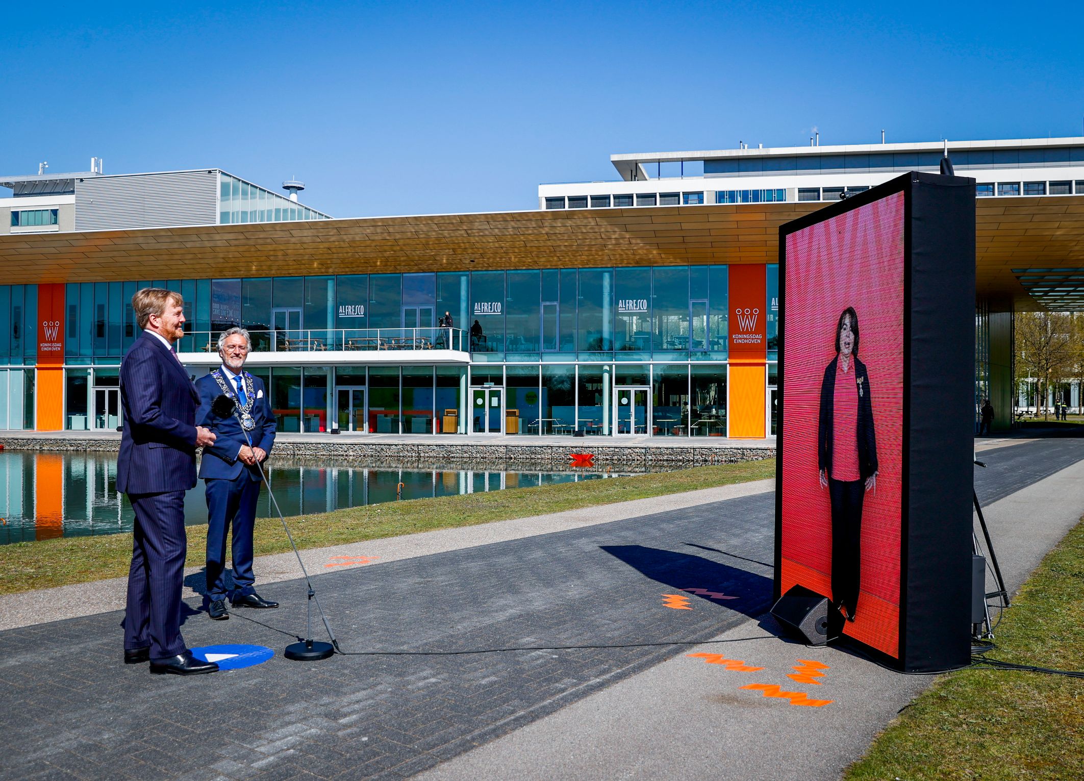 Omdat Koningsdag vanwege de coronamaatregelen zonder publiek wordt gevierd hebben Eindhovenaren de koninklijke familie digitaal verwelkomd. Willem-Alexander, Máxima en hun dochters Amalia, Alexia en Ariane namen plaats in de zogenoemde ‘selfiestraat’ voor de grote schermen om korte gesprekken met ze te voeren.