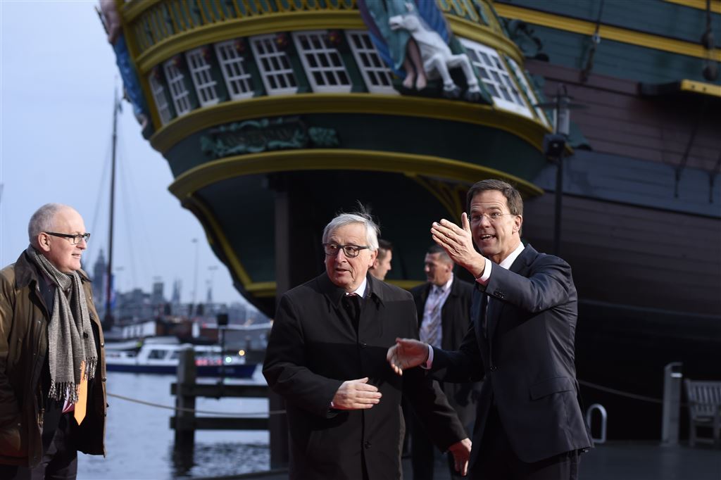 Minister-president Mark Rutte ontvangt de leden van de Europese Commissie donderdagochtend bij het Scheepvaartmuseum in Amsterdam. Hier vindt een korte ontmoeting plaats tussen eurocommissarissen en het Nederlandse kabinet. Aansluitend hebben Rutte en de voorzitter van de Europese Commissie, Jean-Claude Juncker een gesprek.