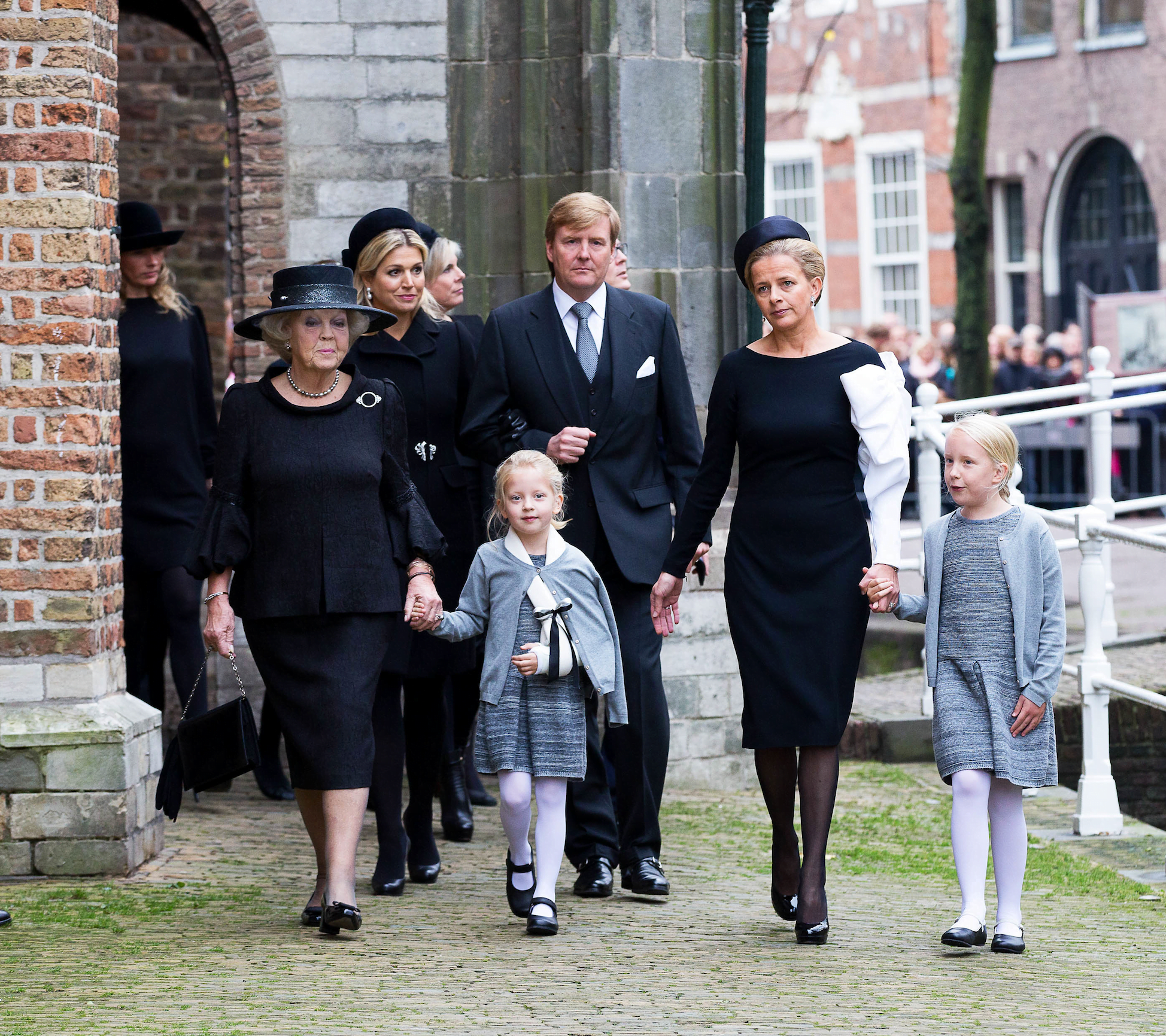 Onder de kleine 900 gasten zijn kroonprins Haakon van Noorwegen en zijn zus Märtha Louise, kroonprins Salman van Bahrein, prins Hassan en prinses Sarvath van Jordanië, premier Mark Rutte, U2-zanger Bono, Kofi Annan en aartsbisschop Desmond Tutu. Gravinnen Luana en Zaria liepen aan de hand van prinses Beatrix en prinses Mabel mee. Daarachter liep het koningspaar. De koninklijke familie was bijna voltallig, maar de zieke prins Bernhard en zijn vrouw Annette ontbraken. Ook prinses Annemarie ontbrak, omdat zij en dochter Cecilia nog aansterken sinds de bevalling op 17 oktober. De in Amerika woonachtige Nicolás Guillermo, zoon van prinses Christina, ontbrak eveneens.