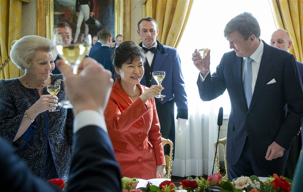 DEN HAAG – Koning Willem-Alexander heeft maandag tijdens de lunch met president Park Geun-Hye van Zuid-Korea geproost op de intensieve samenwerking tussen Nederland en Zuid-Korea.