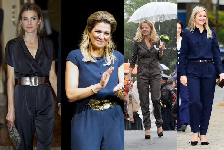Koningin Máxima droeg tijdens de uitreiking van de Prins Bernhard Cultuurfonds Prijs 2014 een donkerblauwe jumpsuit van confectieketen Zara. Een gewaagde keuze, want het pak uit één stuk wordt niet zo heel vaak gedragen aan het hof. Prinses Mabel was een van de eersten die koos voor de trend uit de jaren ’60, maar op enkele uitzonderingen na bleef de jumpsuit verder buiten beeld bij de koninginnen en prinsessen.