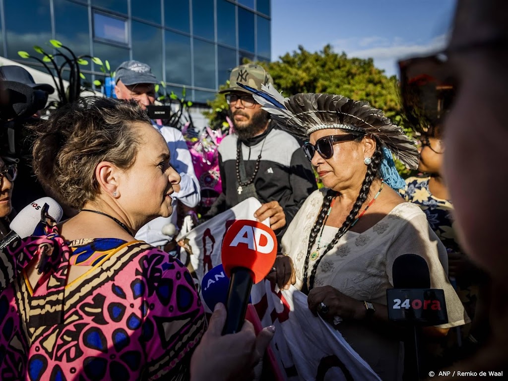 De handvol demonstranten gaf een lijst met eisen aan staatssecretaris Alexandra van Huffelen van Koninkrijksrelaties. Van Huffelen zegde toe de lijst aan de koning te geven, zoals de demonstranten eisten.
