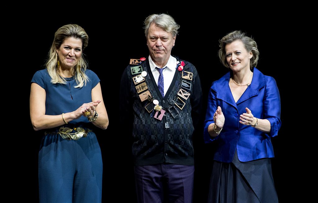AMSTERDAM – Het is een schande dat Nederland zo snijdt in het budget voor de kunst. Dat zei theaterregisseur Johan Simons maandagmiddag tijdens de uitreiking van de Prins Bernhard Cultuurfonds Prijs in Amsterdam. Simons kreeg die onderscheiding, bestaande uit een bijzonder vormgegeven ketting en een geldprijs van 150.000 euro, uit handen van koningin Máxima.