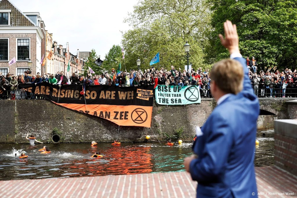 Klimaatactivisten van Extinction Rebellion hebben het bezoek van koning Willem-Alexander en zijn familie aan Amersfoort aangegrepen om actie te voeren tegen de stijgende zeespiegel.