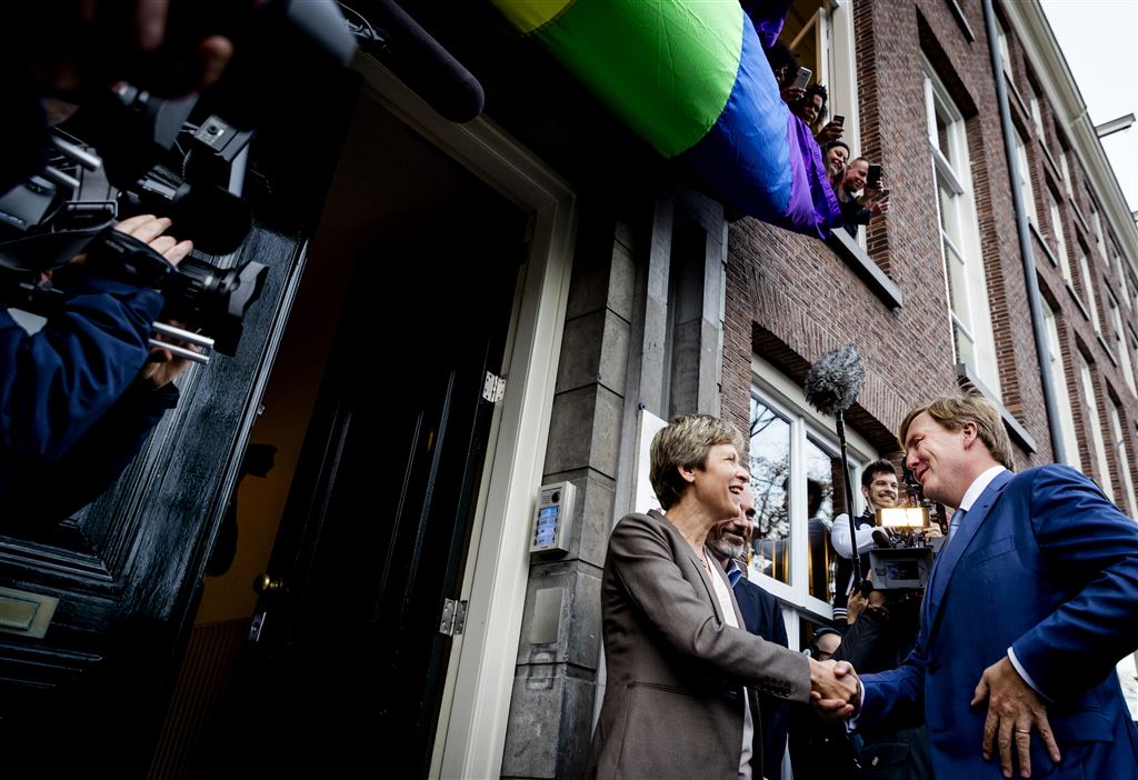 Koning Willem-Alexander is dinsdagmiddag aangekomen bij het hoofdkantoor van COC Nederland in Amsterdam voor een historisch bezoek aan de jubilerende belangenorganisatie voor homoseksuelen en transgenders.