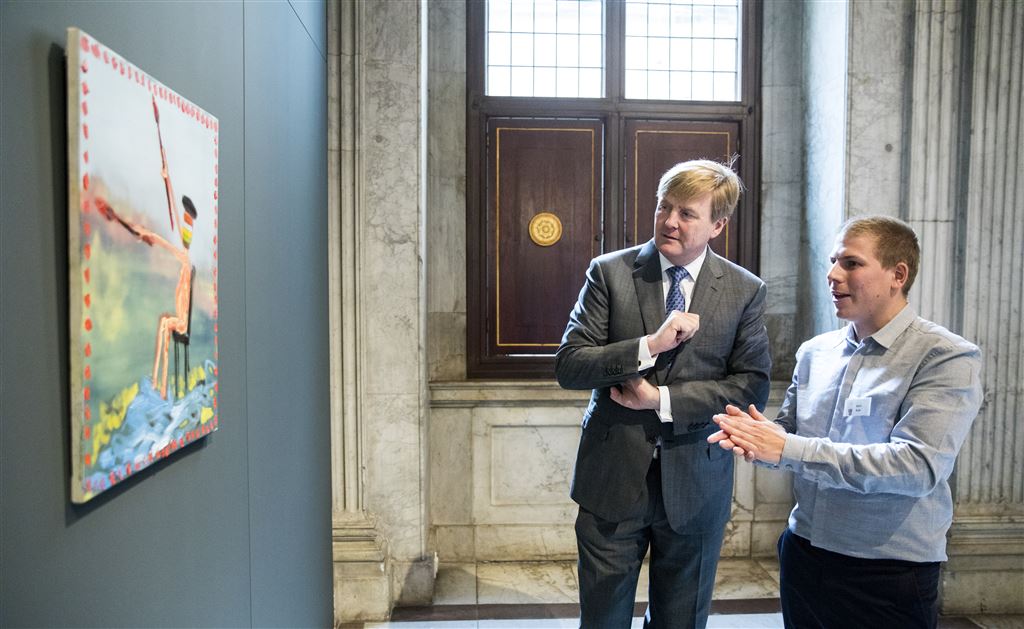 De jonge kunstenaars kregen de prijs, die bestaat uit 6500 euro, in het Paleis op de Dam. Daar worden tot en met 15 november 24 van de 243 ingezonden kunstwerken tentoongesteld. Nadat Willem-Alexander de aanmoedigingsprijzen had uitgereikt, opende hij de expositie. De koning kreeg van de winnaars tekst en uitleg over hun werk.