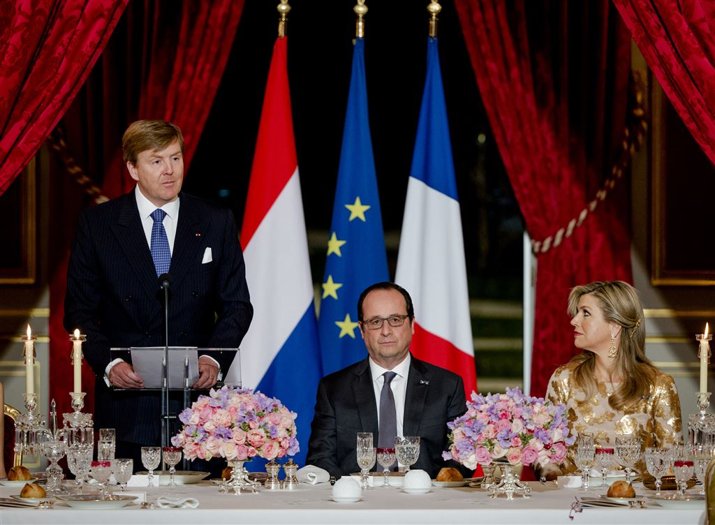 Koning Willem-Alexander heeft donderdagavond in zijn tafelrede bij het staatsbanket in het Elysée tegenover president François Hollande ,,opnieuw onze verbondenheid” bevestigd met Frankrijk. Dit vanwege de ,,diepe wonden” die vorig jaar zijn geslagen door de terroristische aanslagen.