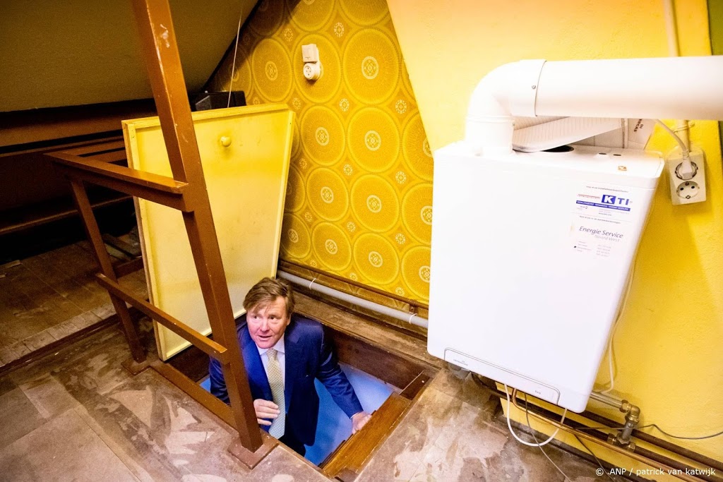 Ook nam Willem-Alexander een kijkje op zolder om te zien welke vraagstukken bewoners in de praktijk tegenkomen als ze hun woning gasvrij willen maken.