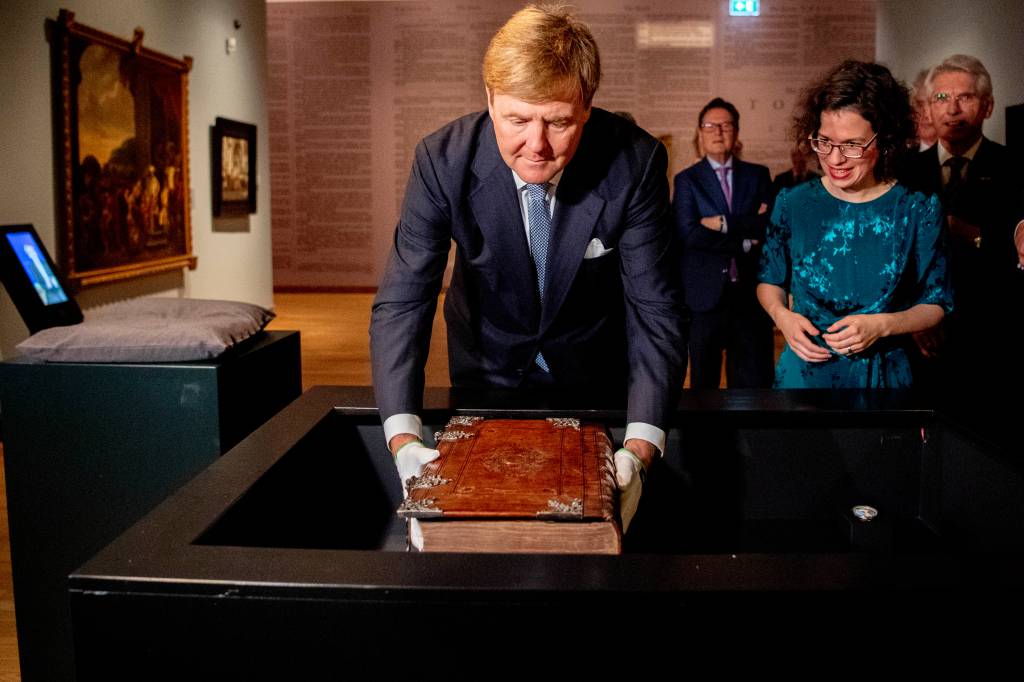 De koning deed dit door het plaatsen van een unieke Statenbijbel uit de Koninklijke Verzamelingen, die heeft toebehoord aan stadhouder Willem IV en zijn echtgenote Anna van Hannover. Het was, zo zei de koning, een bijzondere manier om op deze wijze de expositie te openen.