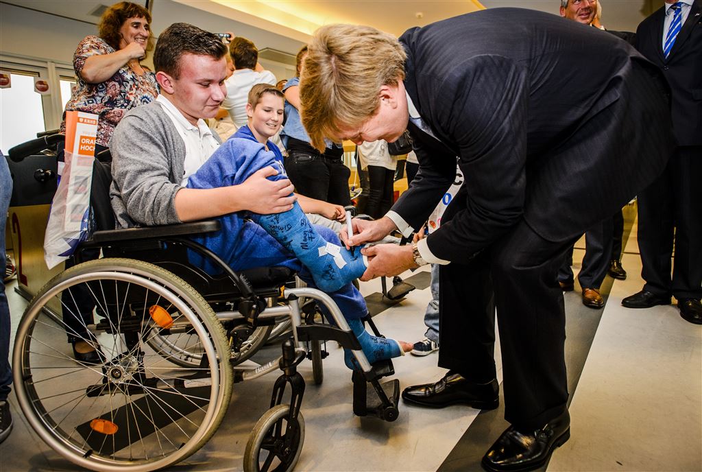De koning sprak met patiëntjes en keek toe toen zij hockeyden. Een van de kinderen maakte van de gelegenheid gebruik om een krabbel van Willem-Alexander te scoren, hij liet de koning op gipsbeen schrijven.