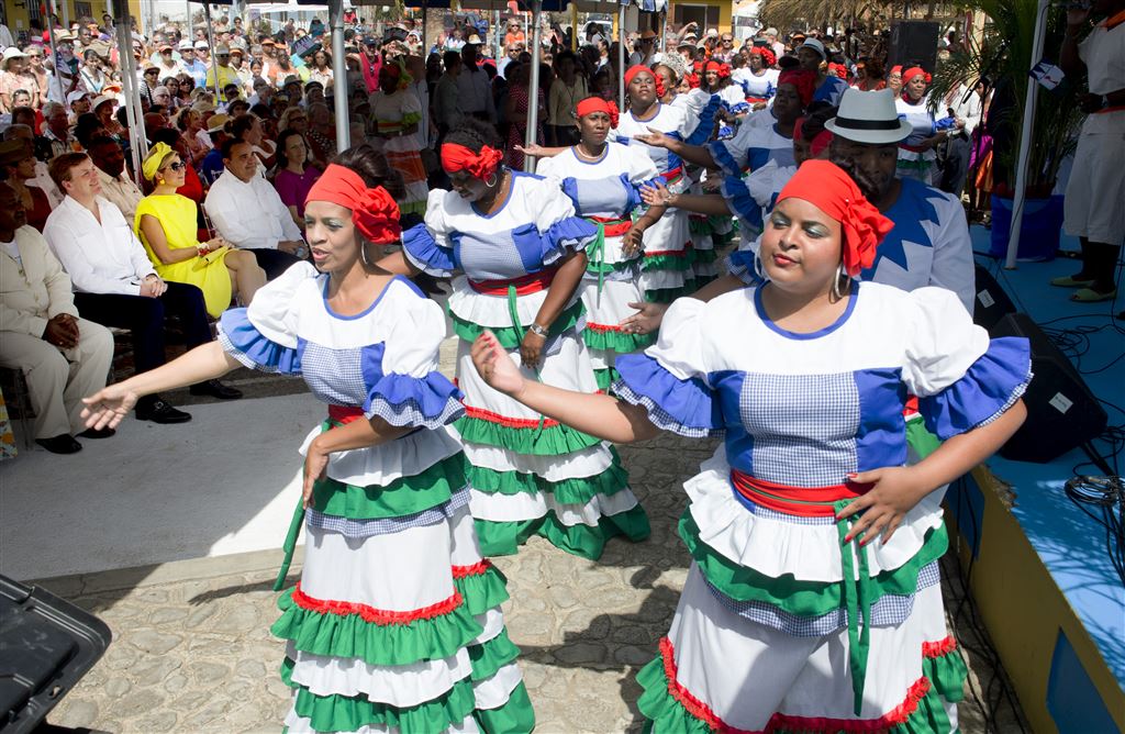 Het koningspaar kreeg onder de stralende Caribische zon een hartelijk welkom in Rincon, waar ze meteen al werden getrakteerd op muziek, dans en plaatselijke lekkernijen. “Het was mijn droom dat u een keer hier zou komen”, aldus Francisco ‘Bubuchi’ Janga, voorzitter van het organisatiecomité.