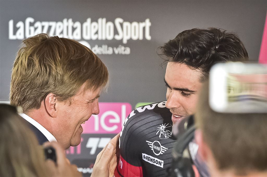 Namens de regering was Staatssecretaris Martin van Rijn aanwezig in Milaan om de Girowinnaar te feliciteren.