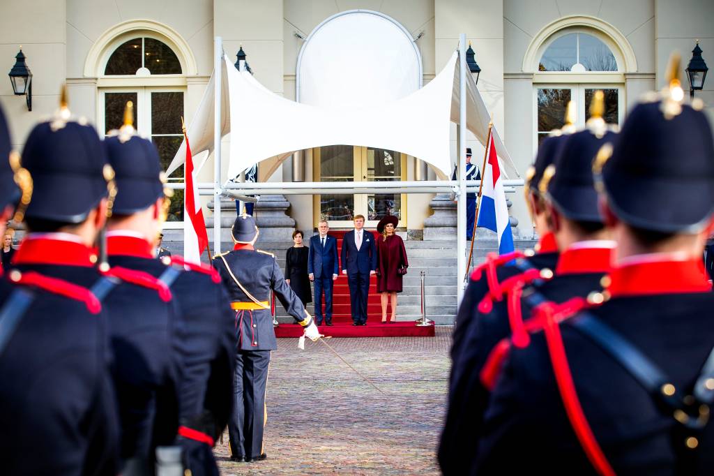 Koning Willem-Alexander en koningin Maxima hebben woensdagmiddag de Oostenrijkse bondspresident Alexander Van der Bellen met militair ceremonieel verwelkomd bij Paleis Noordeinde. De president is samen met zijn echtgenote Doris Schmidauer voor een kort bezoek in Nederland.