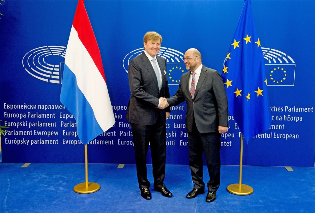 Willem-Alexander spreekt het parlement toe voorafgaand aan zijn ontmoeting met Martin Schulz, voorzitter van het Europees Parlement. De koning gaat ook in gesprek met de fractievoorzitters van het parlement en de Nederlandse Europarlementariërs.