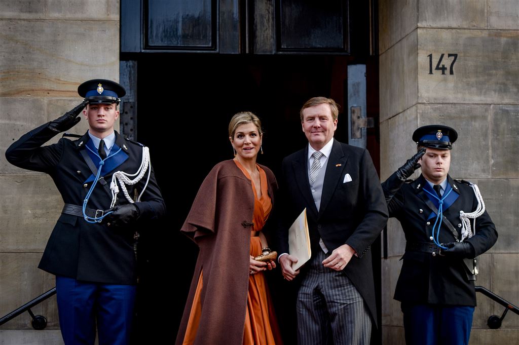 De koning viel op door zijn recent vernieuwde kapsel, waarbij zijn haren opzij zijn gekamd in plaats van de meer naturelle look die hij tot voor kort had. Koningin Máxima verraste met een oranje jurk en bijpassende oorbellen met daaroverheen een bruine mantel. De koning droeg een oranje speldje op zijn colbert.