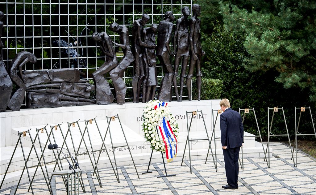 DEN HAAG – Koning Willem-Alexander heeft zaterdag als eerste een krans gelegd bij het Indisch Monument in Den Haag. Daar werd de capitulatie van Japan in 1945 herdacht.