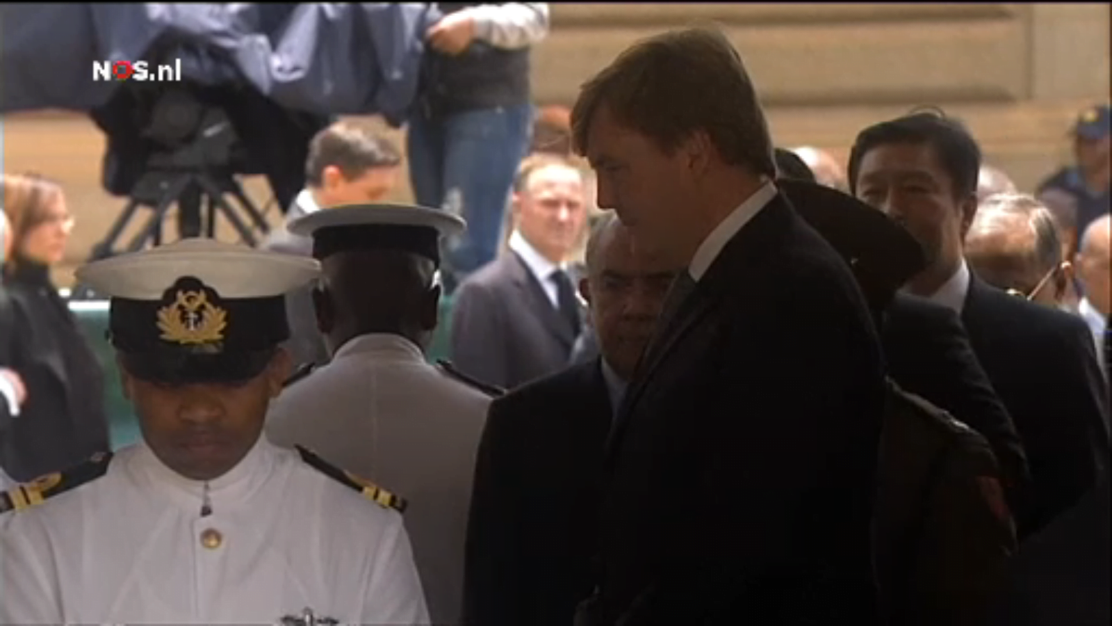 Het lichaam van de eerste zwarte president van Zuid-Afrika ligt de komende drie dagen opgebaard in het Uniegebouw. Op de website van de NOS staat een filmpje waarin te zien is hoe het staatshoofd Mandela de laatste eer bewijst. De koning brengt hem een groet en blijft enkele seconden stilstaan bij de kist.