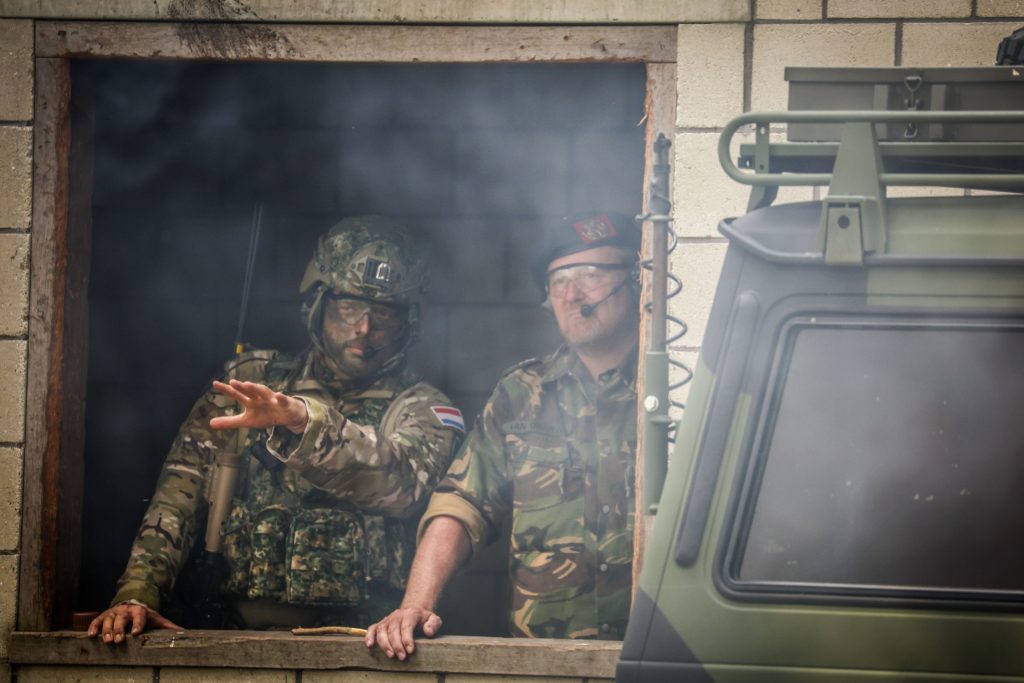 Koning Willem-Alexander deed mee aan een oefening, waarbij militairen een bezet huis binnenvielen. Er werd geschoten – uiteraard met losse flodders – en een deur opgeblazen. Koning Willem-Alexander hielp bij het geven van de orders door de commandant. Bij een dergelijke inval moet de commandant bijvoorbeeld bepalen wat eerst gebeurt: een slachtoffer helpen of jezelf in veiligheid brengen. “Het was heel bijzonder dat de koning mee mocht doen aan de oefening, want we betrekken vrijwel nooit iemand zo interactief”, zegt Bakker. “De commandant nam het voortouw, maar hij vroeg wel aan de koning: ‘wat zou u nu doen?'”