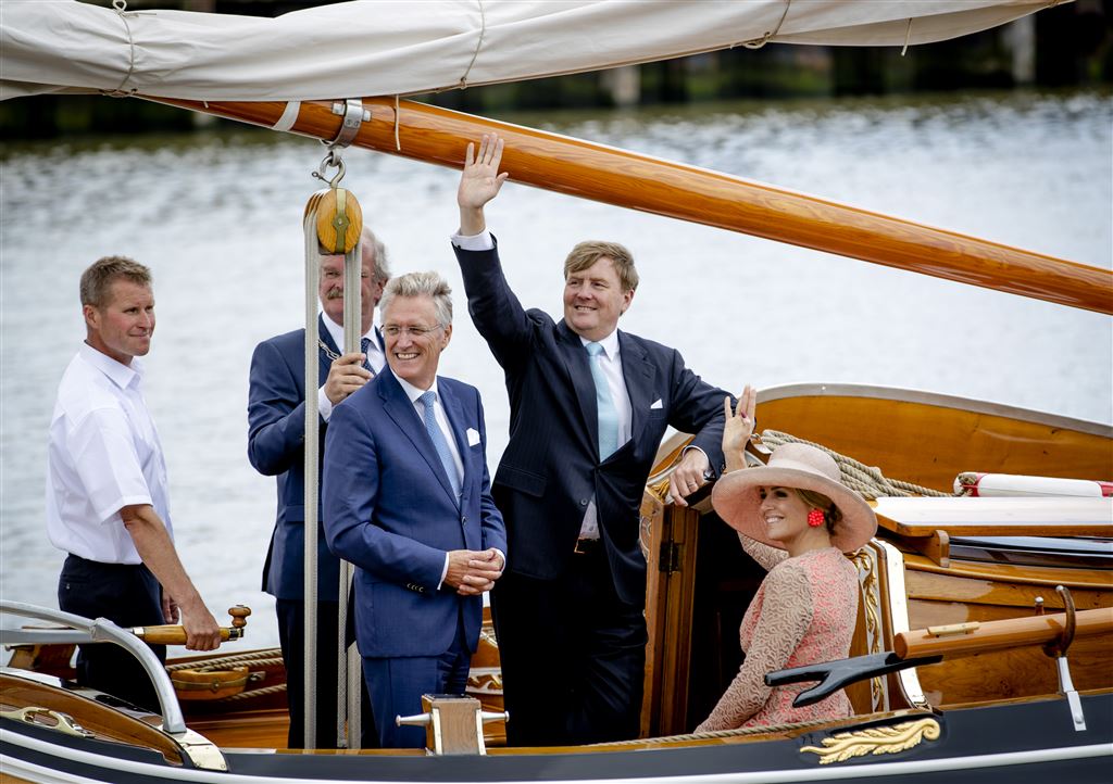 Koning Willem-Alexander en koningin Máxima hebben maandagmiddag hun streekbezoek aan ‘Noardwest Fryslân’ afgesloten in Harlingen, waar onder meer een vaartocht door de industrie- en binnenhaven werd gemaakt aan boord van het Friese Statenjacht ‘Friso’. Langs de kades stond het publiek soms rijen dik in de zomerzon.