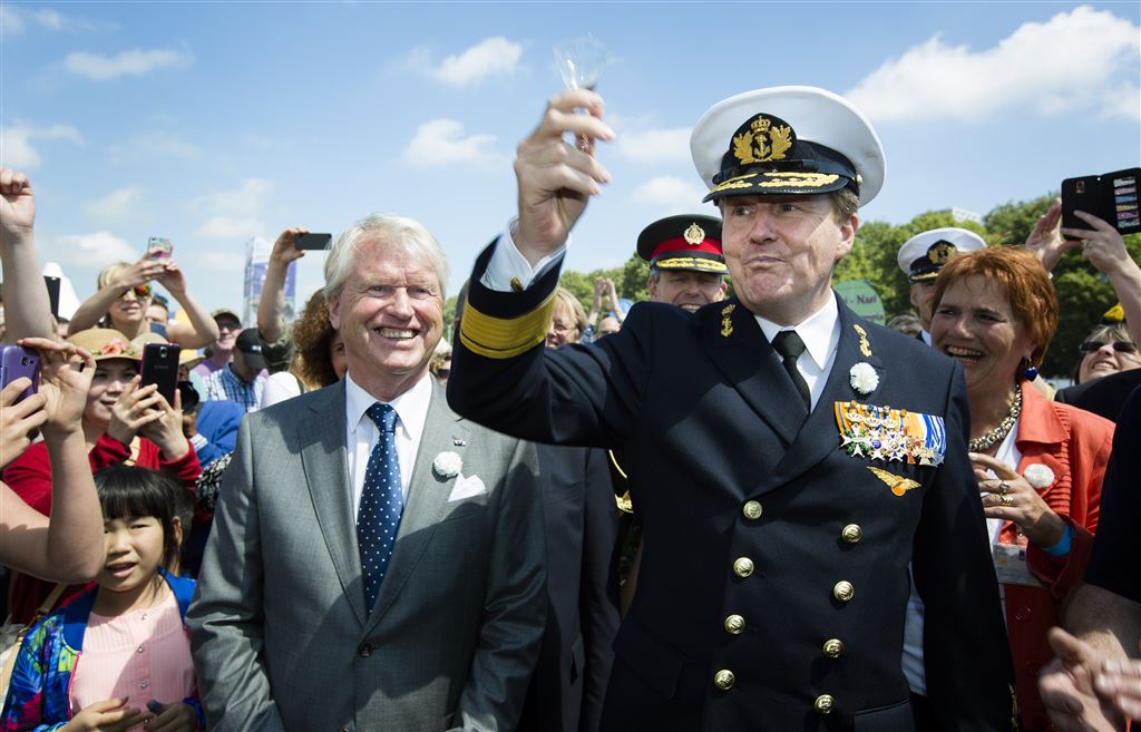 DEN HAAG – Koning Willem-Alexander heeft zaterdagmiddag na afloop van de officiële plechtigheden van Veteranendag een rondgang gemaakt op het Malieveld. Naast het schudden van vele handen was er tijd om te proosten met oranjebitter.