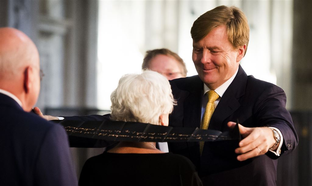 AMSTERDAM – Koning Willem-Alexander heeft woensdagmiddag de Erasmusprijs 2014 uitgereikt tijdens een ceremonie in het Koninklijk Paleis in Amsterdam. De prijs ging dit jaar naar de Belgische festivaldirectrice en curator Frie Leysen.