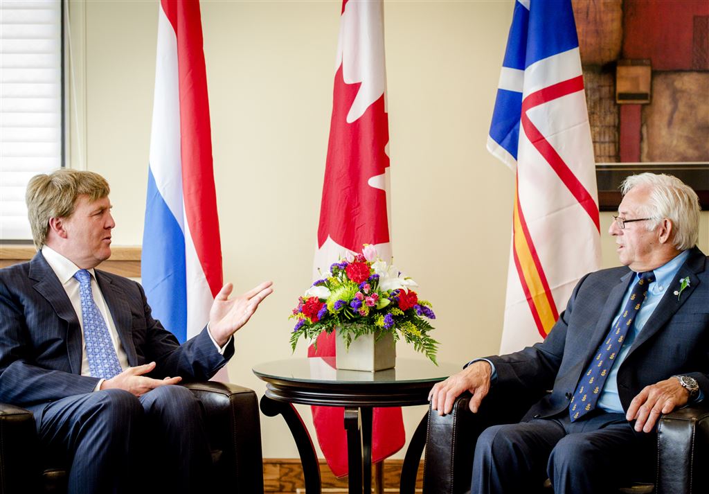 Willem-Alexander vertelde premier Paul Davis dat hij niet voor het eerst in Newfoundland en St John’s was. In zijn marinetijd had hij de havenstad aan de Atlantische kust al eens bezocht. Davis was blij met de komst van het koninklijk paar en bekende dat zijn vrouw, die bij het gesprek aanwezig was, van alles wist over koningin Máxima. “U heeft drie dochters”, wist Davis dankzij zijn echtgenote.
