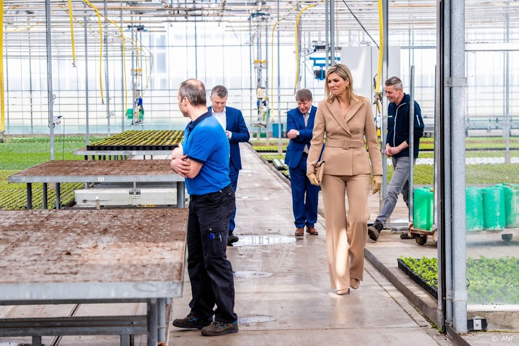Koningin Máxima heeft vrijdagmiddag een werkbezoek afgelegd aan een plantenkwekerij in Honselersdijk. Zij liet zich daar bijpraten door bloemen-en plantenkwekers over de gevolgen van de corona-uitbraak voor deze sector.