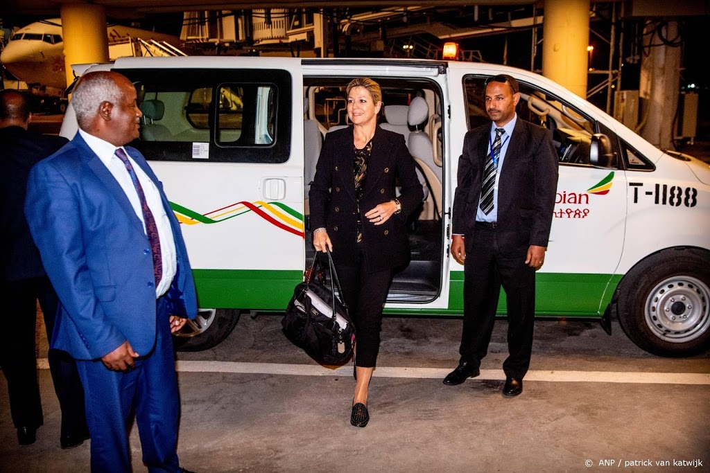 Koningin Máxima is maandagavond aangekomen in Ethiopië voor een tweedaags werkbezoek voor de Verenigde Naties. Op het internationale vliegveld Bolero in Addis Abeba werd ze verwelkomd door de Nederlandse ambassadeur Bengt van Loosdrecht en de secretaris-generaal van het Ethiopische ministerie van Buitenlandse Zaken.