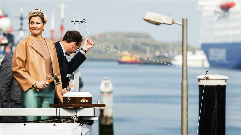 IJMUIDEN – Koningin Máxima verrichtte woensdag in de Vissershaven van IJmuiden de doop van de Nh1816, een nieuw type reddingsboot van de Koninklijke Nederlandse Redding Maatschappij (KNRM). Dit deed ze in het bijzijn van KNRM-directeur Roemer Boogaard en de schipper van de reddingsboot.