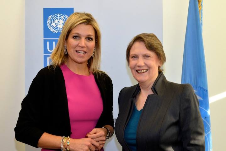 Afgelopen maandag en dinsdag was koningin Máxima in New York vanwege haar werkzaamheden voor de Verenigde Naties. Voor de gelegenheid koos de koningin een fuchsia japon, die ze combineerde met een zwarte bolero en een bijpassende maillot. Om de look af te maken droeg ze bovendien aan haar polsen maar liefst 4 armbanden en haar horloge van Cartier. Wat vindt u van de semi-zakelijke look van onze koningin?