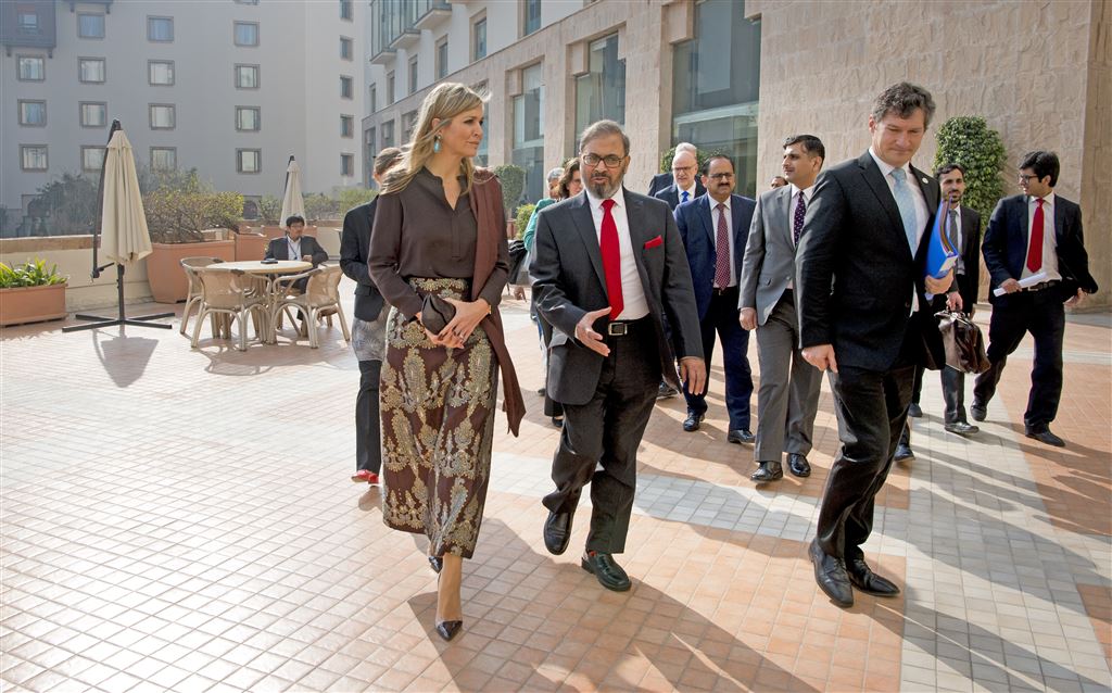 Ze sprak haar waardering uit voor de gepresenteerde ambitieuze plannen van Pakistan, dat wil dat in 2020 50 procent van de bevolking toegang heeft tot financiële diensten als verzekeringen, sparen, geld overmaken en leningen. Nu heeft maar 11 procent van de Pakistanen toegang tot een bankdienst. ,,Het is een grote stap naar toegang voor iedereen”, aldus de koningin.