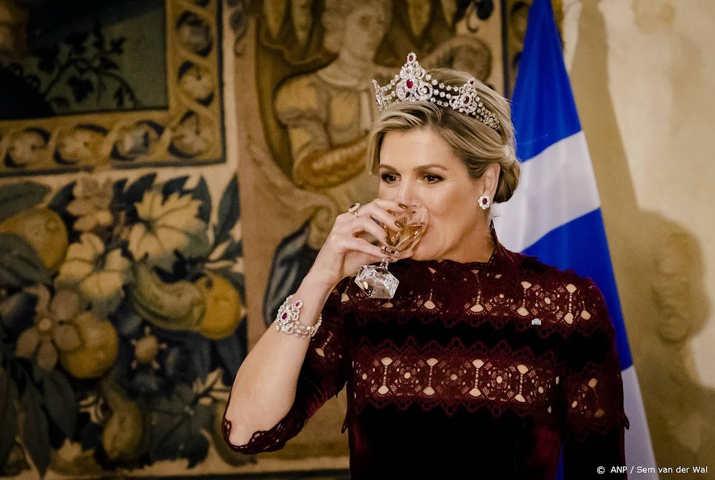 Hoewel dat niet gewoon is in Griekenland, had Máxima – in tegenstelling tot de Belgische koningin Mathilde die vorige week op staatsbezoek was in Griekenland – ook een diadeem in het haar. Ze droeg het Mellerio-diadeem met robijnen, dat ze al twaalf keer eerder in had. Het lijkt daarmee, na de diamanten bandeau, het favoriete diadeem van koningin Máxima te zijn.