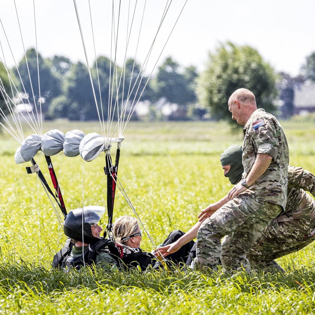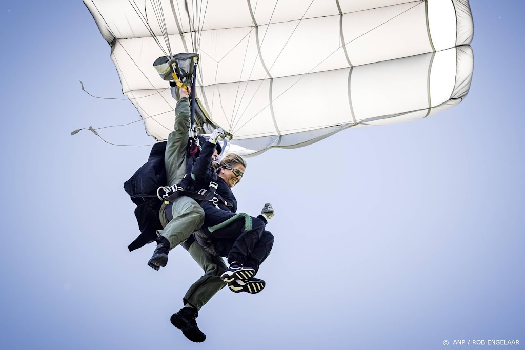 Koningin Máxima maakt parachutesprong: ‘heel erg spannend’