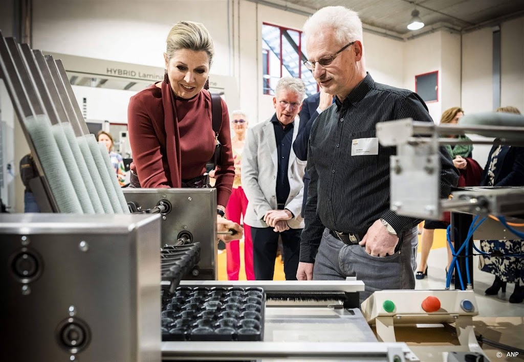 Koningin Máxima heeft woensdag een bezoek gebracht aan Maan Group in het Overijsselse Raalte. Het bedrijf heeft vorig jaar de Koning Willem I Prijs, de zogenoemde Oscar voor het bedrijfsleven, gewonnen in de categorie MKB. Máxima is erevoorzitter van de Koning Willem I Stichting.