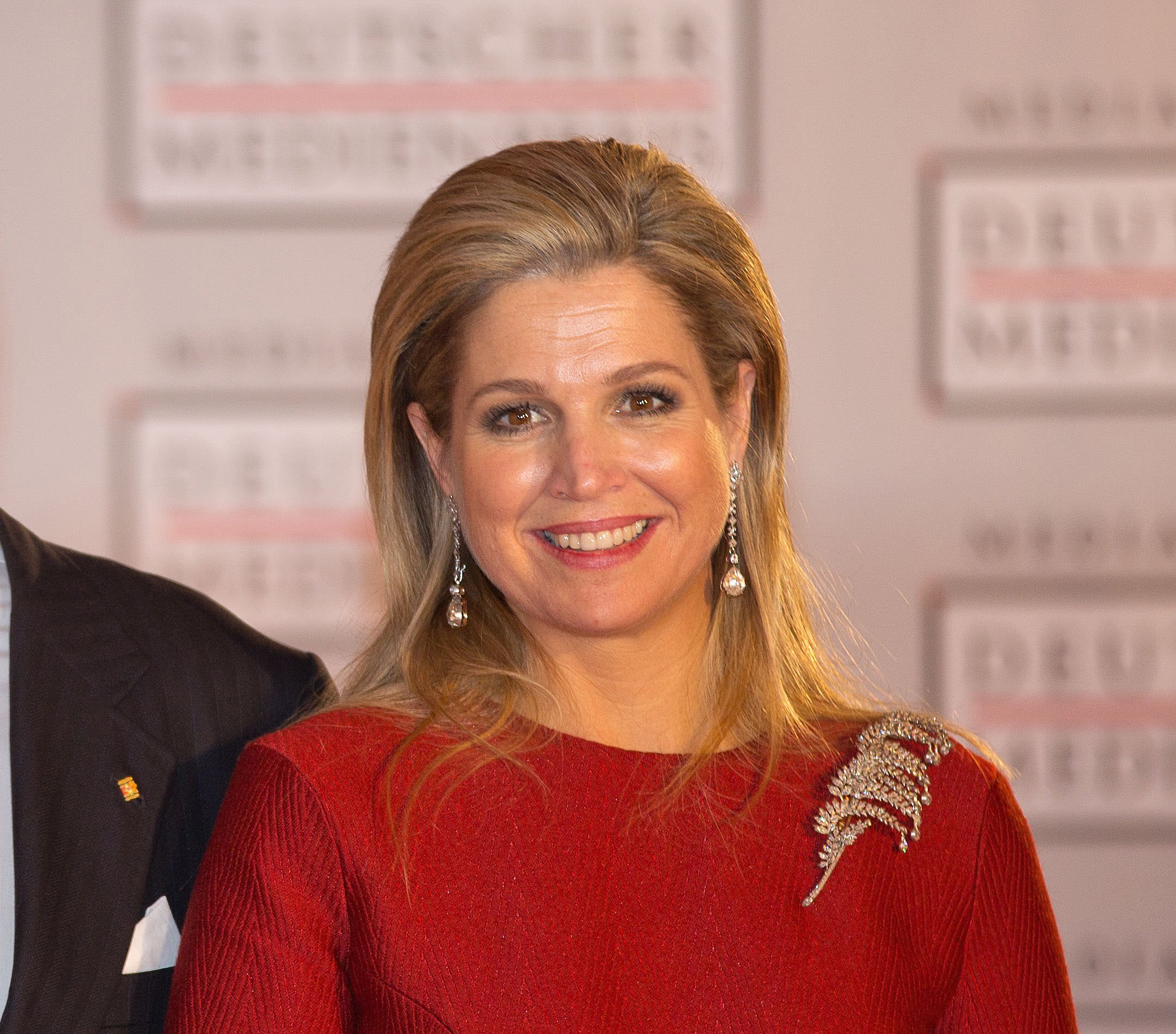 Koningin Máxima ontvangt vanavond in Baden-Baden de Duitse Mediaprijs vanwege haar werkzaamheden voor de Verenigde Naties. Voor de gelegenheid koos de koningin een nieuwe japon van de Nederlandse ontwerper Mattijs van Bergen, gecombineerd met een los kapsel en een bekend grijs tasje. De diamanten broche die ze op haar linkerschouder heeft gespeld is afkomstig uit de koninklijke collectie en werd eerder gedragen door koningin Emma en koningin Juliana. Wat vindt u van Máxima’s look voor vanavond? Geslaagd of niet?