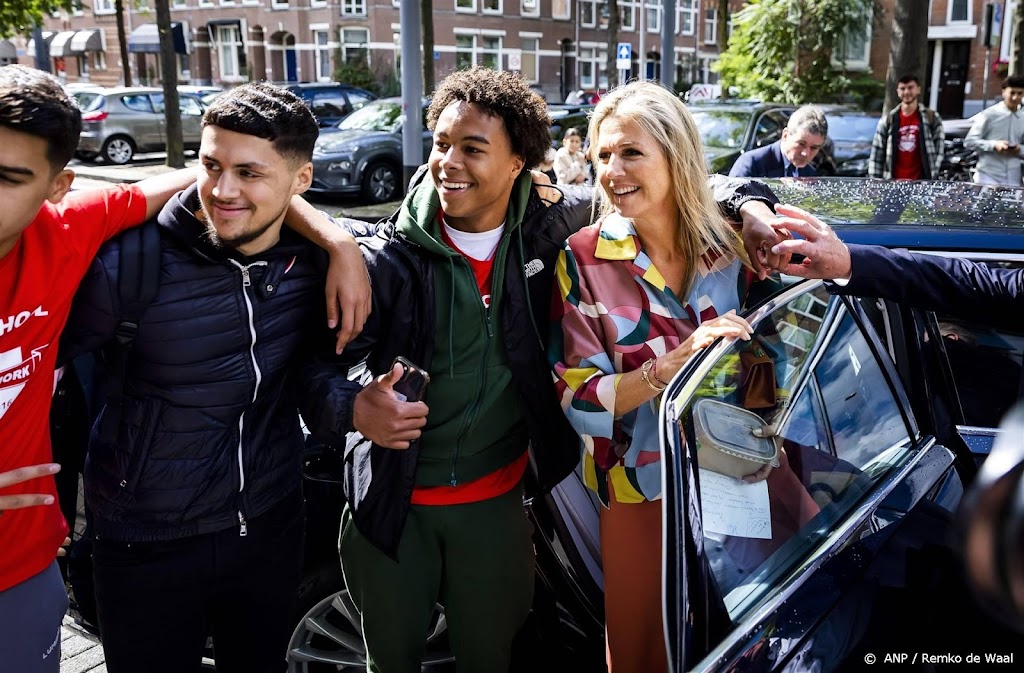 Bij het vertrek van de koningin stond een aantal jongeren op Máxima te wachten. De vrouw van koning Willem-Alexander ging met een aantal van hen op de foto.