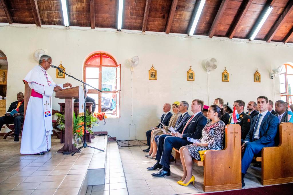 Het in 1780 gebouwde Anglicaanse kerkje, het oudste gebouw op Saba, was tot de laatste plaats gevuld, met nog eens veel belangstellenden buiten die door de open ramen de dienst konden volgen. De verschillende vertegenwoordigers van de kerkgenootschappen vroegen om een ‘zegen voor het koningspaar’ en herinnerden aan de orkanen die de afgelopen maanden het Caribisch gebied hebben geteisterd. Het orkaanseizoen is op 30 november officieel afgelopen.