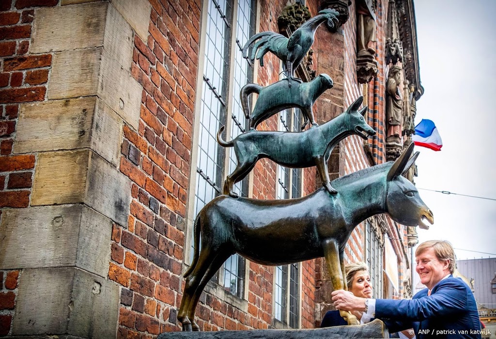 Niettemin zijn de ezel, de jachthond, de kat en de haan bekend geworden als de ‘Stadsmuzikanten’ met sinds 1951 een beeld dat elke bezoeker van de stad even bekijkt of aanraakt. Dat gold dus ook voor het koningspaar, dat op de Markt ook het uit 1404 daterende standbeeld van ‘Der Roland’ bewonderde.