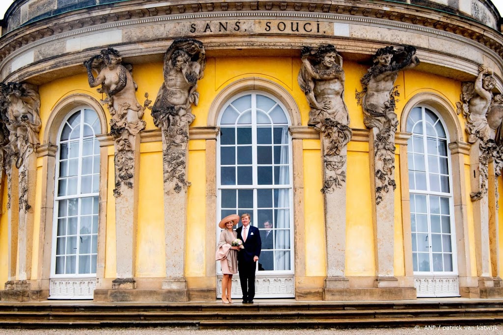 Het koningspaar heeft woensdagmiddag in Potsdam een korte rondleiding gekregen door Schloss Sanssouci, het buitenverblijf van het Pruisische koningshuis en Duitse keizershuis. Aan het slot daarvan poseerden Willem-Alexander en Máxima op het terras voor de massaal uitgerukte media.