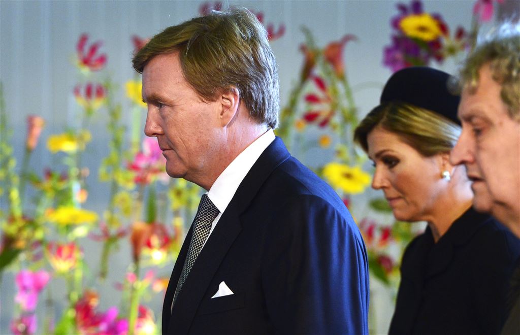 AMSTERDAM – Koning Willem-Alexander en koningin Máxima wonen maandagmiddag de Nationale Herdenking MH17 bij in de RAI in Amsterdam. Bij binnenkomst kort voor 13.00 uur staken zij bloemen in het bloemenmonument bij de entree. Ook prinses Beatrix, prinses Margriet en haar echtgenoot Pieter van Vollenhoven deden dit.