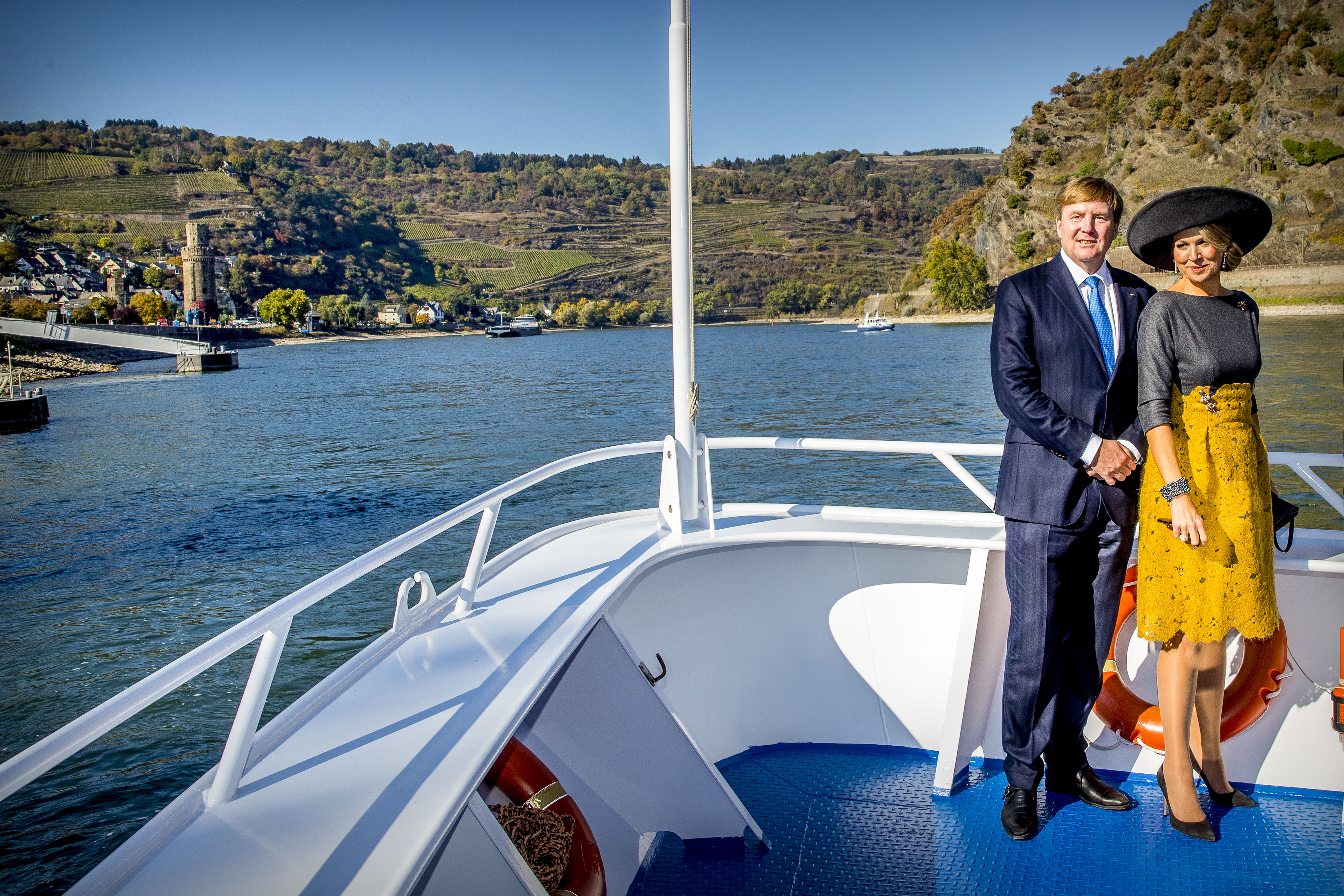 Koning Willem-Alexander en koningin Máxima hebben zich in Oberwesel in de Duitse deelstaat Rijnland-Palts ingescheept voor een kort vaartochtje over een van de mooiste stukjes Rijn, naar Boppard.